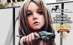 В арт-кафе «Мадам Шоко» 13 мая 2014 пройдут игры «Мафия» для новичков от Mafia Crimea League: «Премьер-лига для новичков». Приглашаются молодые гангстеры, начинающие свой путь и совсем новички, которые не решались пробовать свои силы в игре от Mafia Crimea League!